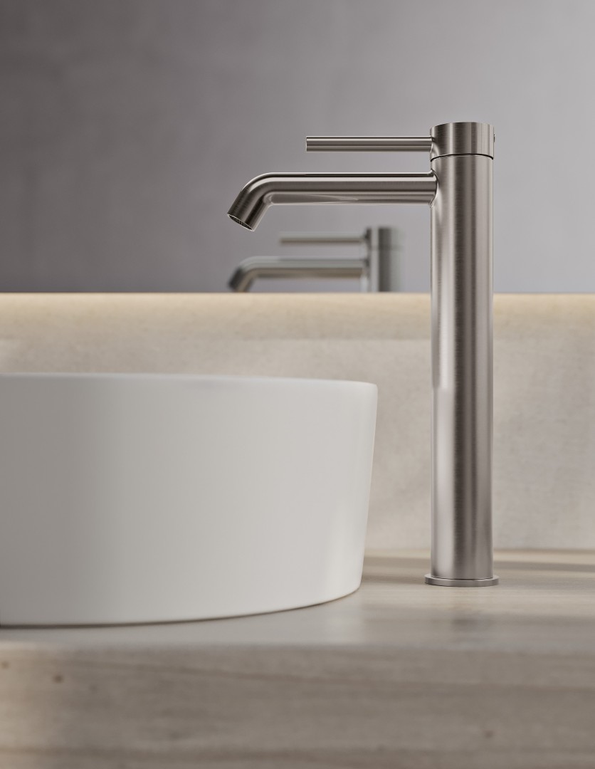 Su diseño lineal y contemporáneo, con una sección redonda, permite que la serie se adapte fácilmente a espacios diversos, desde pequeños baños privados hasta amplias áreas públicas.