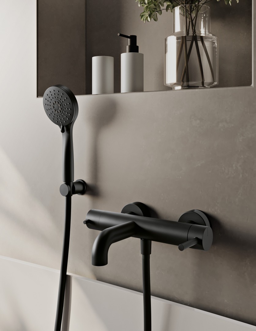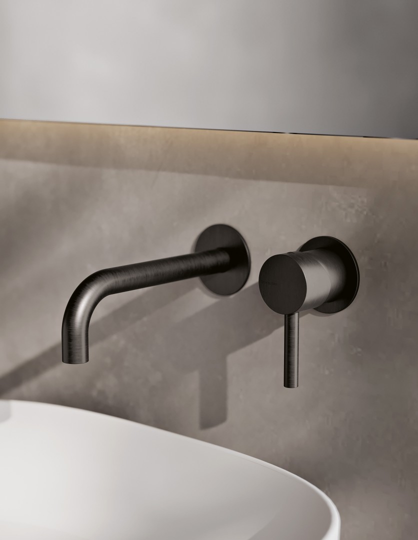 Fabricada íntegramente en Italia, la colección ofrece soluciones para lavabos, bidés, duchas y bañeras, garantizando la máxima coherencia estética. Footprint está realizada en latón y disponible en acabados cromo, negro mate, blanco mate, níquel cepillado y gunmetal.